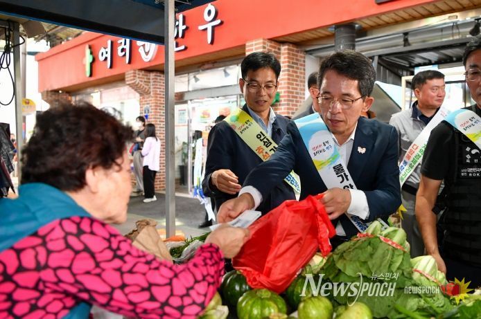뉴스펀치 김길룡 기자 | 영주시는 추석 명절을 앞두고 지역경제 활성화를 위해 지난 2일 관내 전통시장에서 ‘추석맞이 전통시장 장보기 행사’를 개최했다.