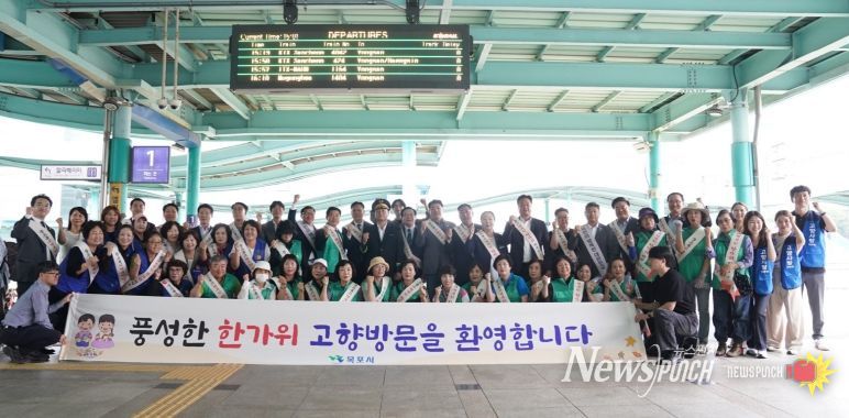 뉴스펀치 김길룡 기자 | 목포시는 2025년 추석 명절을 맞아 2일 목포역에서 귀성객 환영 행사를 열었다.