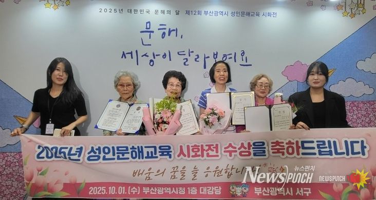 뉴스펀치 김길룡 기자 | 부산 서구는 지난 1일 열린‘2025년 제12회 부산광역시 성인문해교육 시화전’에서 관내 학습자 5명이 최우수상과 특별상 등을 수상했다고 밝혔다.
