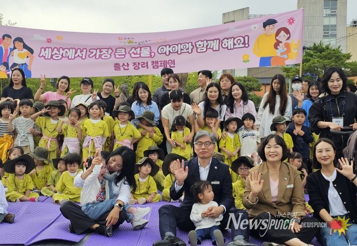 캠페인은 저출산 시대에 출산의 가치와 중요성을 알리고, 긍정적인 출산 문화를 확산하기 위해 마련됐다. 아이들은 아기 인형을 안고 직접 만든 전단지를 주민들에게 나눠주며 출산 장려 구호를 외쳤다.