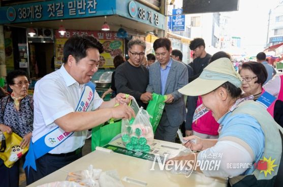 뉴스펀치 강영선 기자 | 오세현 아산시장이 추석 명절을 앞둔 2일, 온양온천시장을 방문해 상인들을 격려하고 직접 장을 보며 명절 물가를 살폈다.