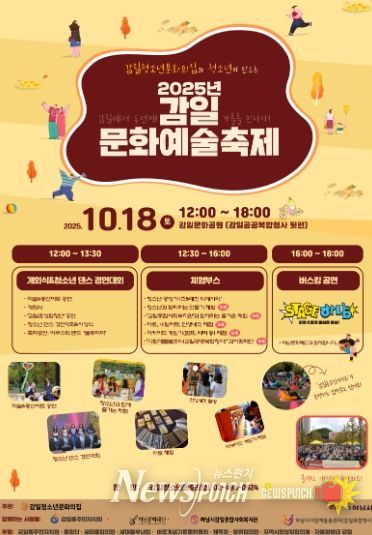 뉴스펀치 탁상훈 기자 | 하남시 감일청소년문화의집은 오는 10월 18일 오후 12시부터 18시까지 감일문화공원(감일공공복합청사 뒷편)에서 '제2회 감일문화예술축제'를 개최한다.
