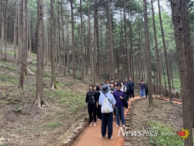 뉴스펀치 김길룡 기자 | 진주시는 2일 석갑산 편백림에서 시민과 함께하는 ‘힐링 맨발걷기’ 행사를 개최해 큰 호응 속에 마무리했다고 밝혔다.