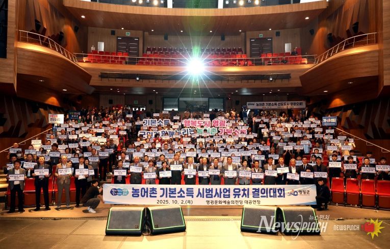 뉴스펀치 김길룡 기자 | 영광군은 지난 10월 2일 오후 2시, 영광문화예술의전당 대공연장에서 '농어촌기본소득 시범사업 유치 결의대회'를 성황리에 개최했다.