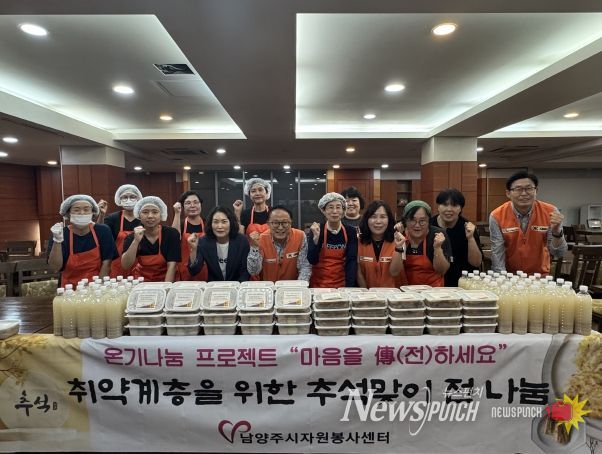 뉴스펀치 탁상훈 기자 | 남양주시자원봉사센터는 추석맞이 집중 주간을 맞이하여 9월 25일부터 오는 10월 3일까지 약 1,300명의 관내 취약계층을 대상으로 ‘추석맞이 전 나눔 활동’을 펼쳤다.