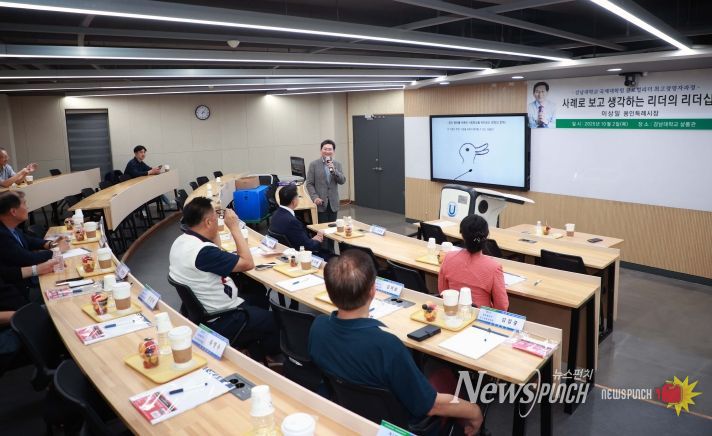 뉴스펀치 탁상훈 기자 | 이상일 용인특례시장은 2일 저녁 강남대학교에서 ‘강남대학교 국제대학원 글로벌리더 최고경영자과정’ 수강생을 대상으로 특강을 했다.