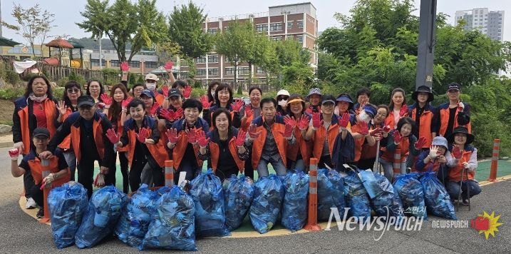 뉴스펀치 탁상훈 기자 | 오산시 초평동통장협의회(회장 최상규)는 10월 2일, 물향기문화체육센터 뒤편 공터 일대에서 환경정화 활동을 실시했다고 밝혔다. 이번 활동은 추석을 앞두고 주민과 방문객들이 깨끗하고 쾌적한 환경에서 명절을 보낼 수 있도록 하기 위해 추진됐다.