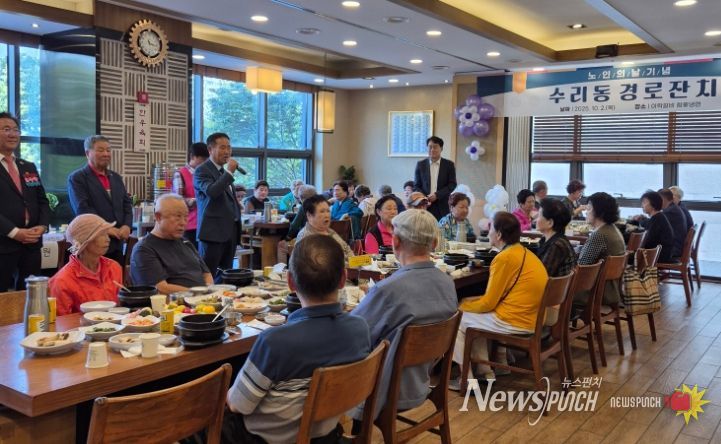 뉴스펀치 탁상훈 기자 | 군포시 수리동 주민자치회(회장 고진해)는 제29회 노인의 날을 맞아 지난 10월 2일 수리동 어르신들을 대상으로 경로잔치를 개최했다. 이번 행사는 하은호 군포시장, 이학영 국회부의장 등 여러 내빈과 수리동 직능단체장들이 어르신 100여 명과 뜻깊은 자리를 함께했다.