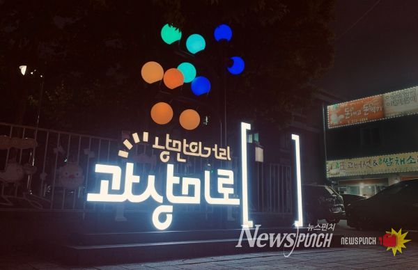 과상미로의 진입부에는 ‘낭만의 거리’라는 문구의 사인 조명과 수목 조명을, 약 400m 길이 보행로에는 열주등을, 어린이공원 앞 구간에는 포토존 조형물을 설치해 활력 있고 밝은 분위기를 만들었다.