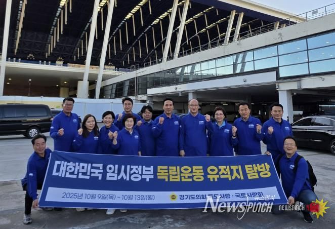 뉴스펀치 탁상훈 기자 | 경기도의회 ‘독도사랑ㆍ국토사랑회’는 광복 80주년을 맞아 10월 9일부터 4박 5일 일정으로 중국 상하이(上海) 및 항저우(杭州) 일대의 대한민국 임시정부 유적지 탐방에 나섰다.