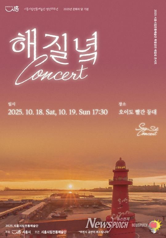 뉴스펀치 탁상훈 기자 | 시흥시는 10월 18일부터 19일까지 이틀간 ‘오이도 빨강등대’에서 시립전통예술단의 ‘해질녘 콘서트’를 선보인다.