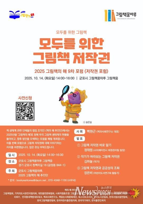 출판사·도서관·서점·작가 등 책 생태계 관련 협업 조직인 '책의 해 추진단'에서는 2025년을 ‘그림책의 해’로 정해 우리 그림책 생태계의 현황을 돌아보고 향후 방안을 모색하는 포럼을 매월 개최하고 있는데, 군포시 그림책꿈마루에서 열리는 이번 9차 포럼은 그림책 저작권 문제 해결을 위한 중요한 발걸음이 될 것이다.