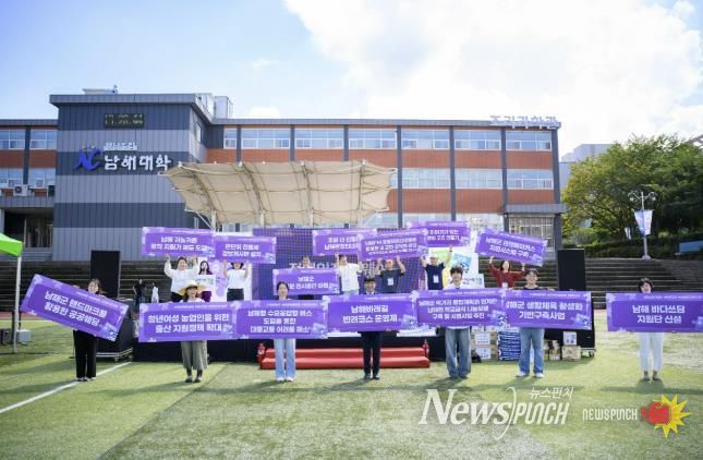 뉴스펀치 김길룡 기자 | 남해군민이 직접 발굴하고 제안한 정책을 공유하는 ‘남해 고향사랑 정책축제’가 지난 9월 27일 경남도립남해대학 운동장에서 성황리에 개최됐다. 남해 군민 600여명이 참여한 이번 축제는 어린아이부터 어르신까지 다양한 세대가 함께 어우러져 남해군의 미래를 그리는 열기로 뜨거웠다.