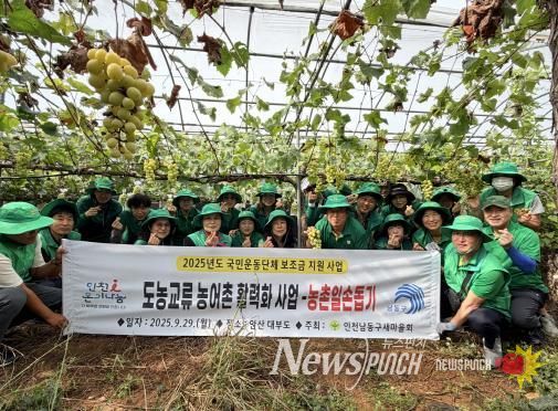 뉴스펀치 탁상훈 기자 | 인천시 남동구 새마을회는 안산시 단원구 대부동에서 도농 교류의 일환으로 농촌 일손 돕기 봉사활동을 펼쳤다고 10일 전했다.