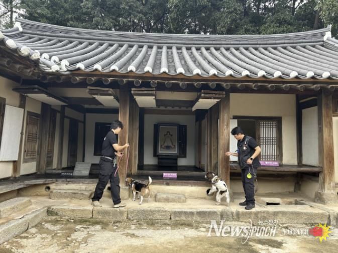 뉴스펀치 탁상훈 기자 | 여주세종문화관광재단은 지난 9월 30일 오후 4시, 명성황후 생가와 감고당 일원에서 흰개미탐지견을 활용한 목조 문화재 점검 활동을 실시했다.