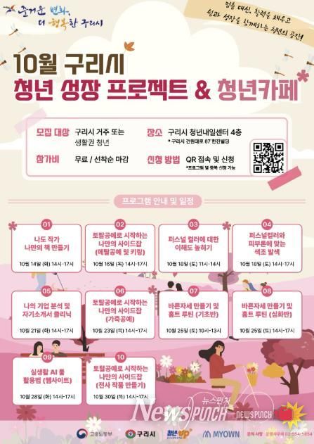 뉴스펀치 탁상훈 기자 | 구리시는 고용노동부 공모사업에 선정돼 4월부터 추진 중인‘2025년 구리시 청년 성장프로젝트’의 10월 프로그램 참여자를 10월 30일 오후 1시까지 모집한다고 밝혔다.