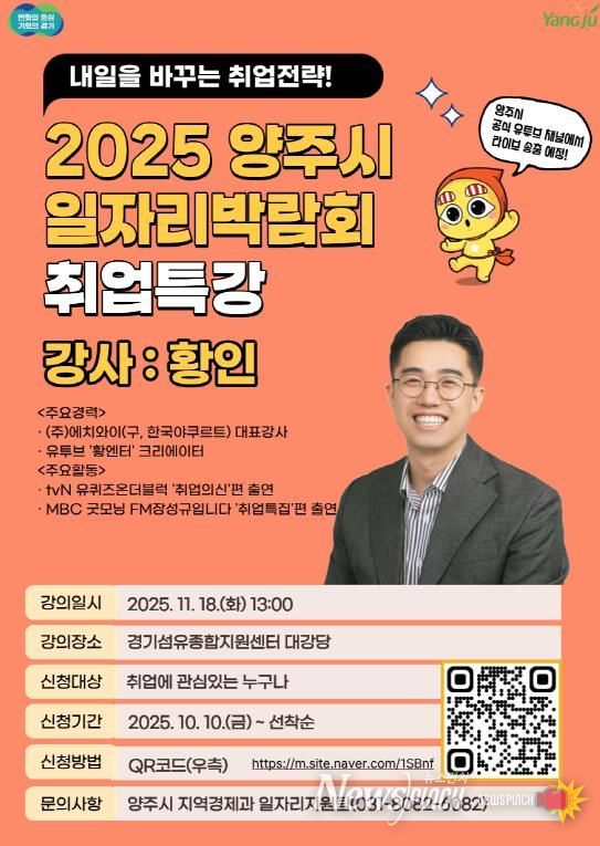 뉴스펀치 탁상훈 기자 | 양주시가 오는 11월 18일 오후 1시, 경기섬유종합지원센터 대강당(지하 1층)에서 ‘2025 양주시 일자리박람회 취업특강’을 개최한다.