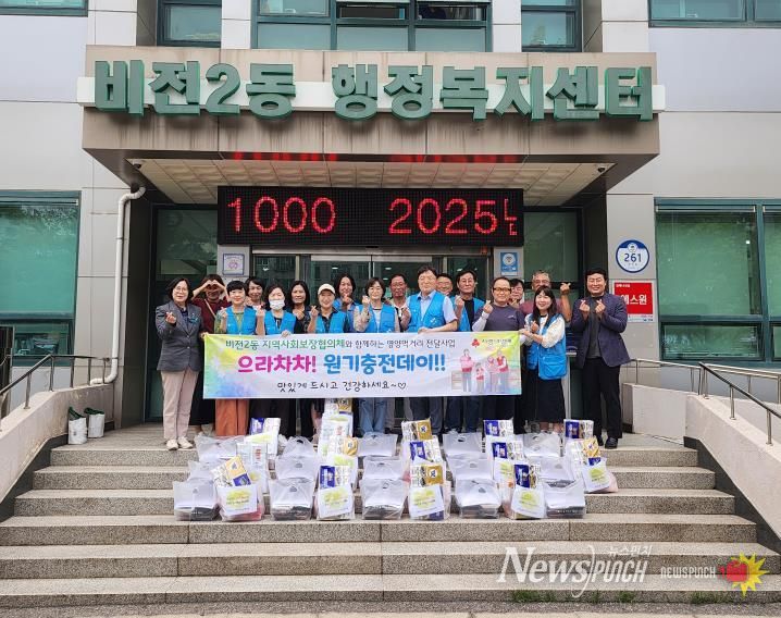 뉴스펀치 탁상훈 기자 | 평택시 비전2동 지역사회보장협의체는 지난 2일 지역 내의 홀로 사는 어르신 및 저소득 위기가정 15가구에 추석맞이 명절 먹거리를 전달하는 ‘으라차차 원기충전데이’를 추진했다.