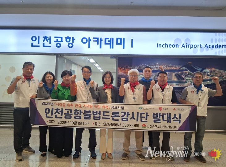 뉴스펀치 탁상훈 기자 | 인천중구노인인력개발센터는 올해 10월부터 ‘인천공항불법드론감시단’이 본격적인 운영에 들어갔다고 13일 밝혔다.