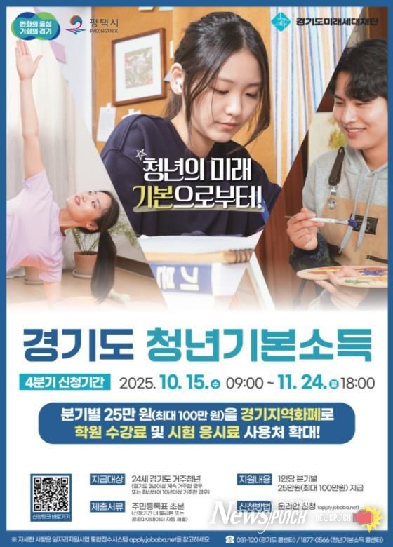 뉴스펀치 탁상훈 기자 | 평택시는 청년의 사회적 기본권 보장을 위한 청년기본소득 4분기를 10월 15일부터 11월 24일 18시까지 신청받을 예정이라고 밝혔다.