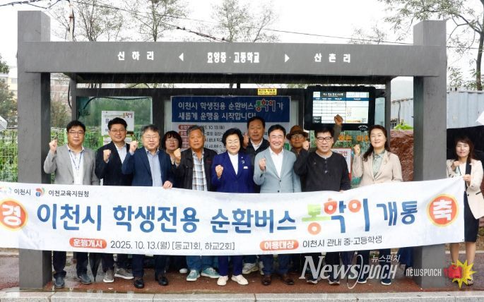 뉴스펀치 탁상훈 기자 | 이천시는 교통취약지역 중·고등학생들의 편리한 통학을 지원하기 위해 추진해 온 ‘학생통학 순환버스 지원사업’을 10월 13일 정식 개통했다고 밝혔다.