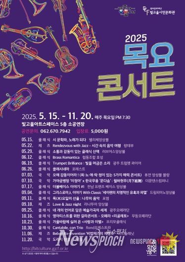 뉴스펀치 조은별 기자 | 광주문화재단(대표이사 노희용)은 오는 10월 16일, 23일, 30일 목요일 저녁 7시 30분, 빛고을아트스페이스 5층 소공연장에서 ‘10월의 목요콘서트’를 개최한다고 밝혔다.