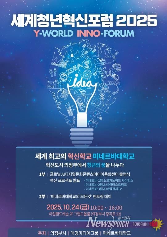뉴스펀치 탁상훈 기자 | 의정부시는 10월 24일 오전 10시, 아일랜드캐슬 2층 그랜드볼룸에서 ‘세계청년혁신포럼 2025(Y-WORLD INNO-FORUM)’를 개최한다.