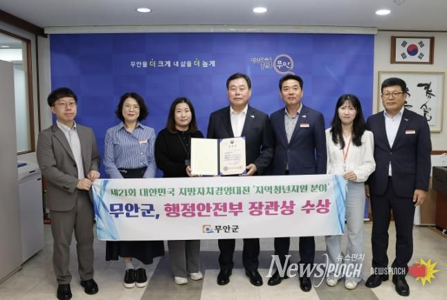 뉴스펀치 김길룡 기자 | 전남 무안군은 행정안전부와 한국일보가 공동으로 주최한 '제21회 대한민국 지방자치경영대전'에서 지역청년 지원 분야 우수기관으로 선정되어 행정안전부 장관 표창을 수상했다.