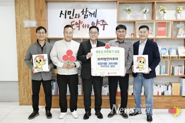 뉴스펀치 탁상훈 기자 | 양주시가 지난 13일 광적면 소재 ㈜리빙인아로마로부터 방향제품 300세트(환산가액 500만 원)를 기탁받았다.