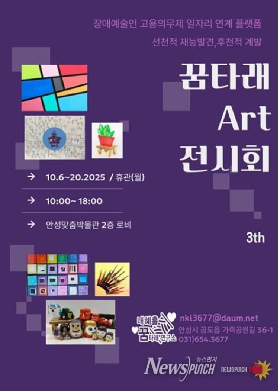 뉴스펀치 탁상훈 기자 | 안성시 청소년 발달장애인들이 참여한 ‘꿈타래 Art 전시회’가 10월 6일 월요일부터 안성맞춤박물관 2층 로비에서 진행되고 있다.
