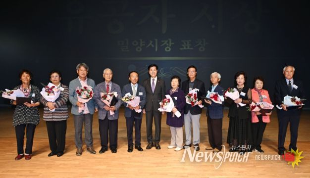 유공자 표창은 남다른 봉사 정신으로 지역사회와 이웃에 헌신함으로써 모범이 된 어르신과 노인복지 기여자 등에게 수여됐다. 삼랑진읍 금곡경로당 이정화 회장 외 19명이 시장 표창을, 삼문동 옥합경로당 김을춘 회장 외 1명이 국회의원 표창을, 무안면 서부여성경로당 송춘옥 회장 외 1명이 밀양시의회 의장 표창을, 삼랑진읍 용전경로당 김용선 총무 외 11명이 대한노인회 밀양시지회장 표창 및 장수상을 수상하는 등 총 38명이 표창을 받았다.