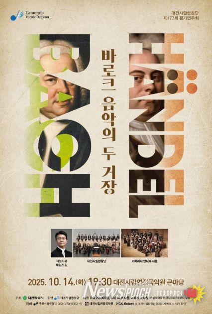 뉴스펀치 김길룡 기자 | 대전시립합창단은 14일 오후 7시 30분 대전시립연정국악원 큰마당에서 제173회 정기연주회 ‘바흐와 헨델’을 선보인다.