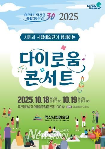 15일 익산시에 따르면 익산시립예술단은 이리시와 익산군 통합 30주년을 기념해 오는 18~19일 유천생태습지 어울림광장 일원에서 '다이로움 콘서트'를 진행한다.