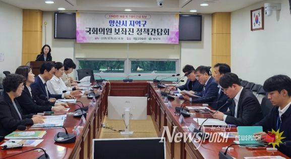 뉴스펀치 김길룡 기자 | 양산시는 15일 여의도 국회 의원회관에서 지역 국회의원 보좌진과 정책간담회를 개최했다고 밝혔다.