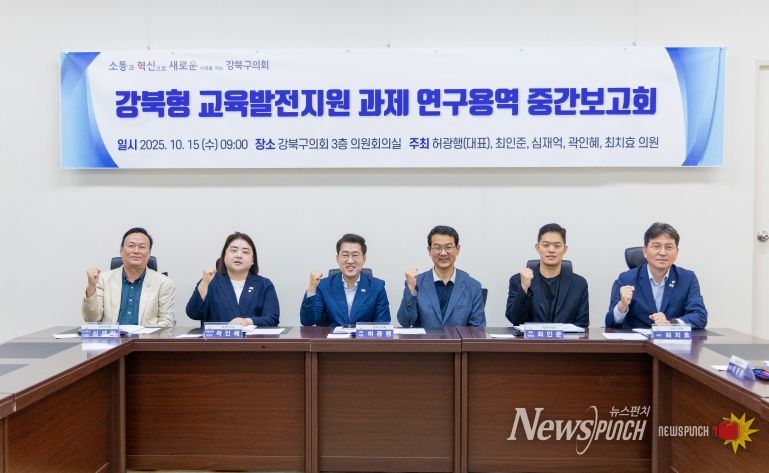 뉴스펀치 김완규 기자 | 강북구의회 의원연구단체인 ‘강북형 교육발전지원 연구회’ (대표의원 허광행)는 지난 10월 15일 의회 3층 의원회의실에서 중간보고회를 열었다.