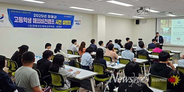 뉴스펀치 김길룡 기자 | 장흥군은 15일 (재)장흥군인재육성장학회 주관으로 장흥고등학교에서 ‘2025년 장흥군 고등학생 해외비전캠프 사전설명회’를 개최했다.