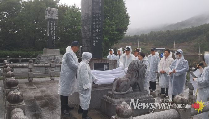 뉴스펀치 김길룡 기자 | 군위군은 10월 16일 군위읍 오곡리에 위치한 무공수훈자 전공비 앞에서 ‘무공수훈자 명각 기념식’을 개최하고, 새롭게 무공훈장을 서훈받았거나 기존 명단에서 누락된 4분의 무공수훈자 성함을 전공비에 새겨 올렸다.