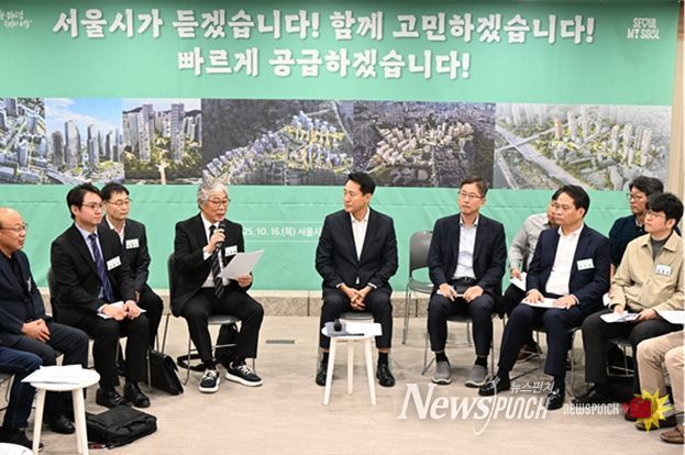 뉴스펀치 김완규 기자 | 오세훈 서울시장이 16일 오전 10시 서울시청 간담회장(8층)에서 ‘서울시 정비사업연합회’ 소속 주민대표들과 ‘주택공급 활성화를 위한 민‧관정책협의회’를 개최했다.