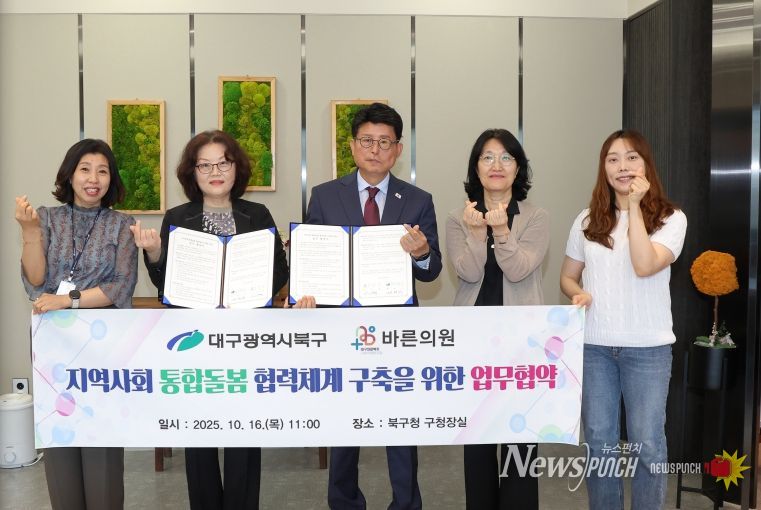 뉴스펀치 조평훈 기자 | 대구 북구청은 10월 16일 내년 시행 예정인 의료·요양 통합돌봄사업의 성공적 추진을 위해 지역의 장기요양 재택의료센터인 바른의원(이사장 오미형)과 업무협약을 체결했다.