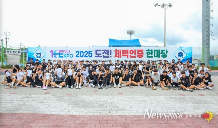 뉴스펀치 김길룡 기자 | 경상북도김천교육지원청은 10월 15일 김천스포츠타운 보조경기장에서 ‘2025 도전! 체력인증 한마당’을 열고 관내 초·중·고등학교 학생들의 체력 향상과 건강 증진을 위한 뜻깊은 한마당을 펼쳤다. 이번 행사는 학생건강체력평가(PAPS)를 기반으로 학생들이 자율적이고 지속 가능한 신체활동을 실천할 수 있도록 돕기 위해 마련됐다. 단순한 체력 측정을 넘어,‘측정–평가–체력인증–누적관리’로 이어지는 체계적인 프로그램으로 구성되어 학생들의 자기관리 역량과 체육활동 참여 문화를 확산하는 데 그 목적이 있다.