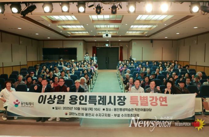 뉴스펀치 김길룡 기자 | 이상일 용인특레시장은 16일 오전 수지구 큰어울마당에서 대한노인회 용인시 수지구지회가 운영하는 수지청춘노인대학 어르신 100여 명을 대상으로 미술 특강을 했다.