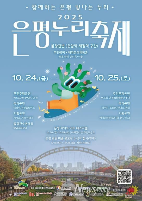 뉴스펀치 김완규 기자 | 서울 은평구는 오는 24일부터 25일까지 불광천 변 일대에서 은평문화재단 주관으로 ‘2025 은평누리축제’를 개최한다고 밝혔다.