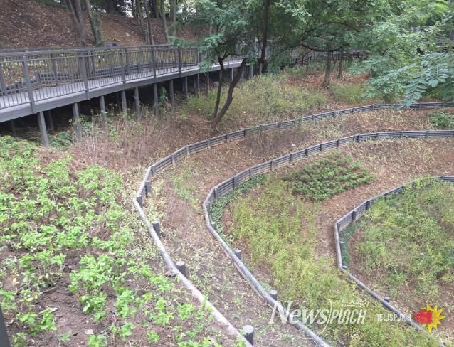 공원 내에는 조팝나무, 좀작살나무, 황매화, 수국 등 관목 1,700여 주와 줄사철 9,500본을 식재해 사면안정과 더불어 생태 녹지 경관을 조성했다.