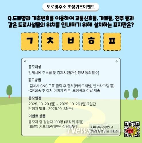 뉴스펀치 정홍균 기자 | 김제시는 도로명주소에 대한 시민들의 관심과 이해를 높이고 올바른 주소 사용을 장려하기 위해 오는 20일부터 26일까지 도로명주소 초성퀴즈 이벤트를 실시한다고 밝혔다.