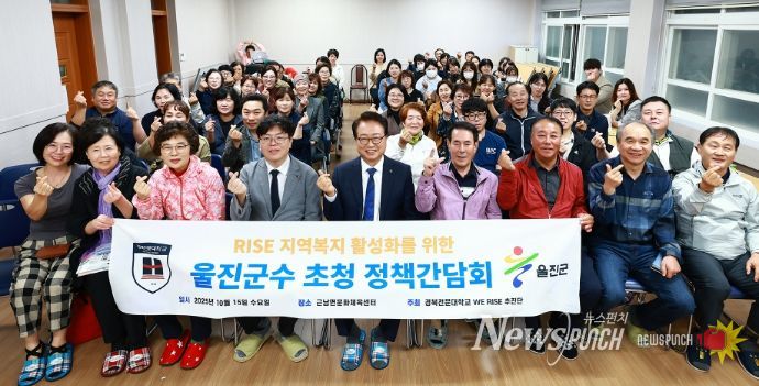 뉴스펀치 김길룡 기자 | 울진군(군수 손병복)은 지난 10월 15일, 경북전문대학교 울진캠퍼스에서‘지역복지 활성화를 위한 울진군수 초청 간담회’를 사회복지과 재학생들을 대상으로 진행했다.