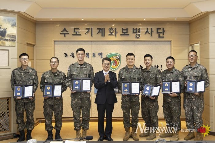 김동연 지사는 이날 가평 수도기계화보병사단에서 부대 및 유공자 6명을 표창하고 경기도 위문금을 전달했다. 표창장 수여행사는 맹호부대 각급 지휘관도 영상 모니터로 시청하며 함께했다.