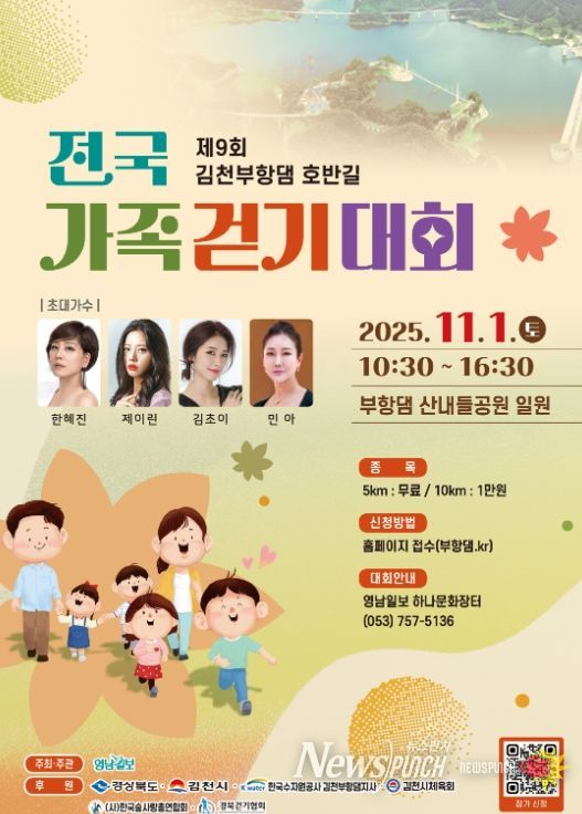 손중일 건강증진과장은 “이번 대회는 걷고, 쉬고, 즐기고, 추억까지 남길 수 있는 가족 나들이형 축제”라며, “부항댐의 가을 절경 속에서 가족과 함께 특별한 하루를 보내시길 바란다.”라고 전했다.