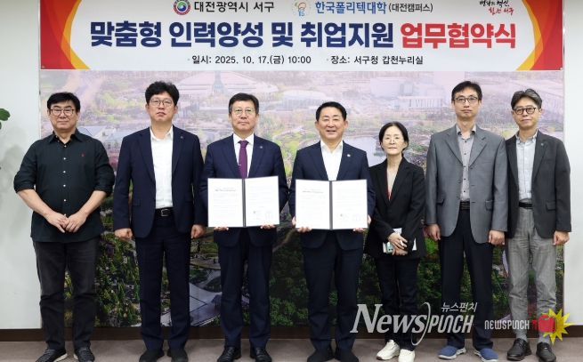 뉴스펀치 이현승 기자 | 대전 서구는 한국 폴리텍대학과 지역산업 맞춤형 인력 양성 및 취업 지원을 위한 업무협약(MOU)을 체결했다고 17일 전했다.