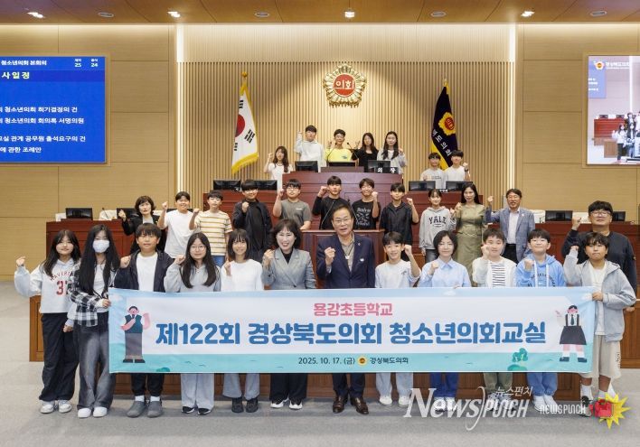 뉴스펀치 김길룡 기자 | 경상북도의회는 10월 17일 본회의장에서 경주 용강초등학교 학생 25여명이 참여한 가운데『제122회 경상북도의회 청소년의회교실』을 개최했다.