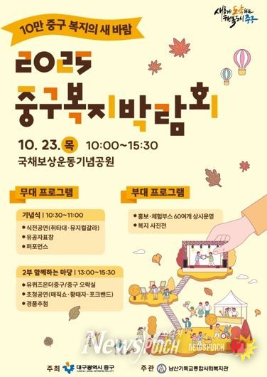 뉴스펀치 조평훈 기자 | 대구 중구는 오는 10월 23일 중구 국채보상운동기념공원에서 2025 중구 복지박람회를 개최한다고 밝혔다.